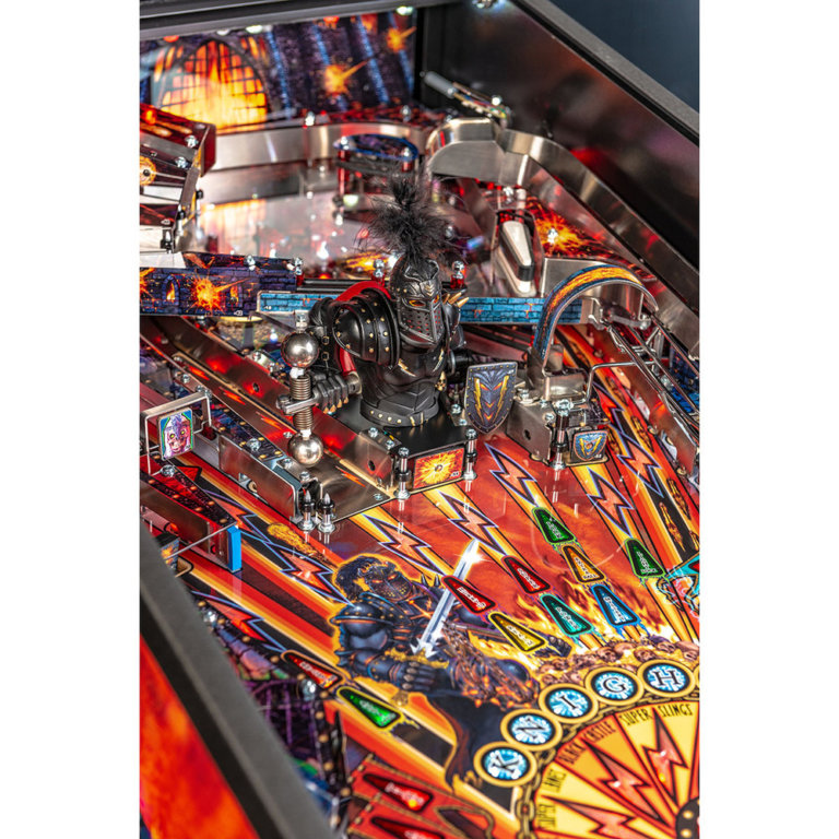 The Black Knight is back and better than ever! Taking everything you loved about the originals and infusing it with today’s technology, the features and game play are unrivaled. Designed by the original Black Knight designer, Steve Richie, this is the table pinball fans have been waiting for! Eye-popping artwork surrounds the crystal clear LCD screen that displays all original animation bringing to life the Knight, his skeleton army, his evil allies and more! With playfield features like a spinning flail, an upper playfield (LE and Premium) and a Magna save, this is a totally new Black Knight but with all the charm of the originals. Retro play mode lets you play it like the original games, even using the LCD to display early pinball numeric-style scoring. Taking a great game and making it even better, this is sure to become an instant classic.