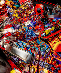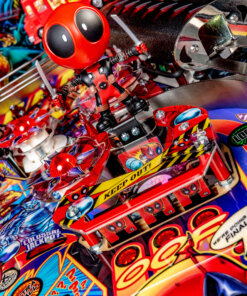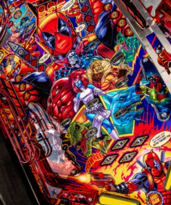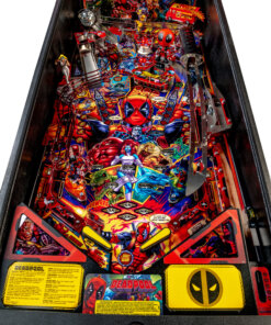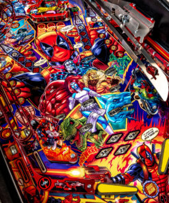 Stern’s Deadpool Pro, Premium, and Limited Edition models feature stunning and distinctive hand-drawn art by renowned illustrator Zombie Yeti. Well known actor Nolan North stars as the eccentric voice of Deadpool. Each game features a 3-bank drop target with a ball lock that’s guarding a custom molded Lil’ Deadpool bash toy target. In addition, all models include two stainless steel and wireform ramps with a Katana Sword ramp return. Deadpool pinball entertains with an amazing array of ninjas, vampires, and chimichangas, making it suitable for all skill levels.
