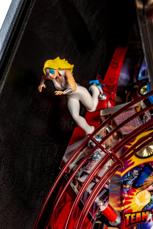 The Premium and Limited Edition models feature an additional 8 drop targets, motorized disco ball with disco illumination effects, custom molded Wolverine and Dazzler action figures, and with a custom molded chimichanga truck time machine. In addition, these models include an actuated up/down ramp that feeds the right flipper from the left orbit, keeping the action continuous and fast. All Premium models will include a custom “Deadpool’s Mix Tape” cassette featuring 11 original music tracks with sleeve art by Zombie Yeti.