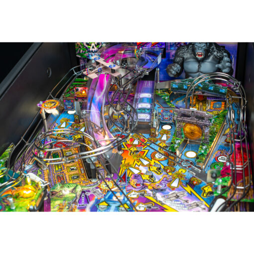 Thrilling gameplay features and challenges await players on this four-flipper adventure. Unlock the secrets of the Lost Temple four bank drop targets with a hidden standup target and navigate into the Kong Cave scoop and vertical up kicker. Survive Kong’s punch-back kicking target, which launches balls back at the player. This pinball adventure highlights original animations, music, sounds, and speech, with original art brought to life by legendary pinball illustrators Kevin O’Connor, Greg Freres, and Jeremy Packer aka Zombie Yeti. Custom speech is provided by comedy legend Brian “Q” Quinn from Impractical Jokers fame, along with Rick Zieff, Peter Mackenzie, and Scott Mosenson.