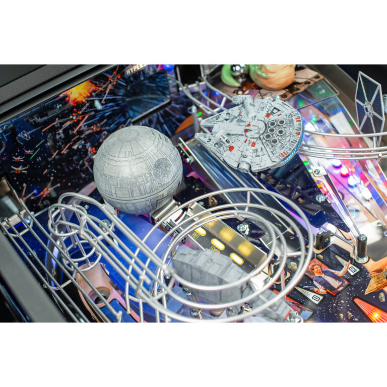 In Stern Pinball’s Star Wars: Fall of the Empire pinball games; players will take part in the adventures that started it all and experience iconic Star Wars-inspired moments through a pinball experience like no other. Players will take down the AT-AT by attaching their snowspeeder’s tow cable and shooting the spiral ramp to send it crashing down, mirroring the breathtaking scene from Star Wars: The Empire Strikes Back. Destroy the Death Star II from Star Wars: Return of the Jedi by lowering shields on the battle station during Death Star Multiball to save the galaxy. Players can also escape from Cloud City when reactivating the Millennium Falcon’s hyperdrive by hitting the center jump ramp to escape to hyperspace. Throughout the pinball experience, players will enter Jabba the Hutt’s Sarlacc Pit, battle stormtroopers, defeat TIE fighters, and even mimic using the Force to save your ball on the journey to defeating the Empire. Feel the power of the dark side as you enjoy special Darth Vader-inspired modes.