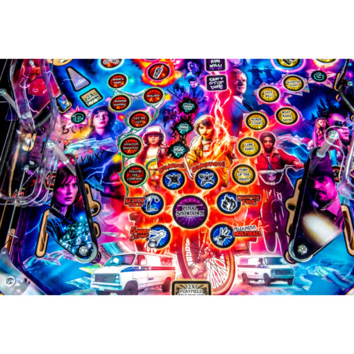 Experience the terrifying forces in Hawkins, Indiana that turn this small town “upside down” with supernatural elements, strange sightings, and government secrets. *Stranger Things* pinball machines will immerse players in a search to unravel the extraordinary mysteries and secret government experiments taking place at the Hawkins National Laboratory. The gameplay focuses on unlocking the hidden meanings of supernatural events occurring in and around the town, including the appearance of a girl known as “Eleven” with telekinetic abilities. The ball is wild as Mike, Lucas, Dustin, Will, Joyce, and Police Chief Jim Hopper help Eleven close the dimensional gate.