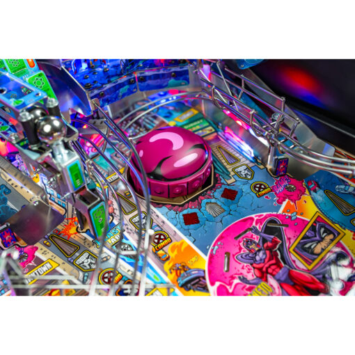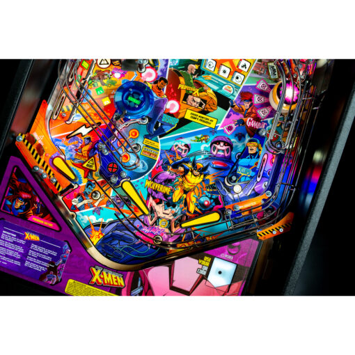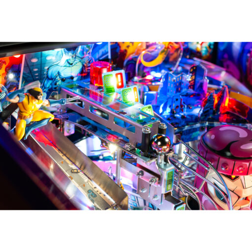The Uncanny X-Men playfield is a unique pinball layout that features an array of new crossing shots and ramp designs with surprising ball trajectories to deliver kinetic satisfaction. The all-new Danger Room design, located to the left of the main flippers, offers a high-risk, high-reward experience that includes a mini-flipper and a novel outlane spinner. Premium and Limited Edition models also include an all-new elevated captive ball vari-target themed as Beast’s Lab.
