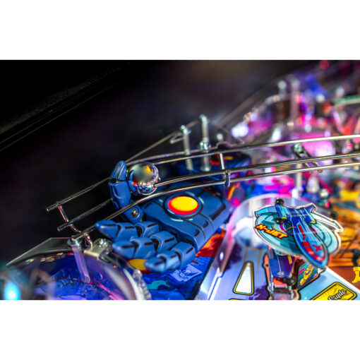 The Uncanny X-Men pinball game features a mechanically articulated Sentinel for the player to battle. The Sentinel’s large robotic head changes its state based on the player’s actions. In the Premium and Limited Edition models, the Sentinel rises from underneath the playfield and fights back by destroying the player’s ramps or attacking the ball with its extended hands.