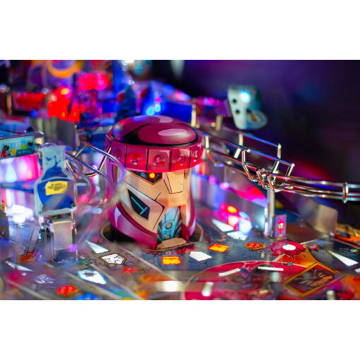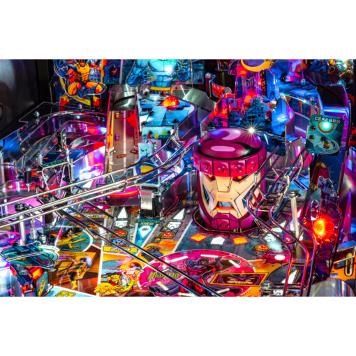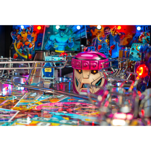 The Uncanny X-Men pinball game features a mechanically articulated Sentinel for the player to battle. The Sentinel’s large robotic head changes its state based on the player’s actions. In the Premium and Limited Edition models, the Sentinel rises from underneath the playfield and fights back by destroying the player’s ramps or attacking the ball with its extended hands.